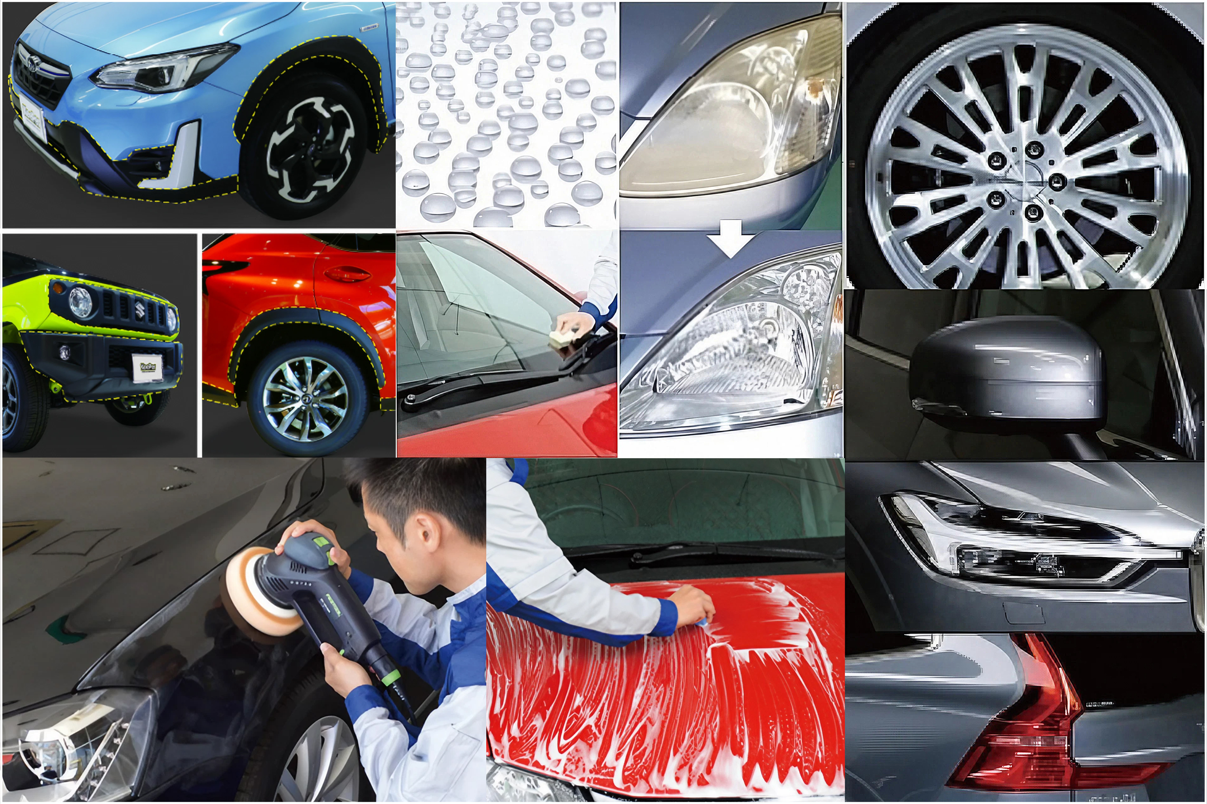 | 施工箇所 | ①窓ガラス全面 ②アルミホイール4本 ③ヘッドライト ④テールレンズ ⑤サイドバイザー(ある場合) ⑥ドア内側のステップ部分 ⑦ボンネット裏側 ⑧トランクの裏側 ⑨給油口の内側 ⑩エンジンルームの中 ⑪除菌車内清掃 ⑫樹脂フェンダーキーパー |